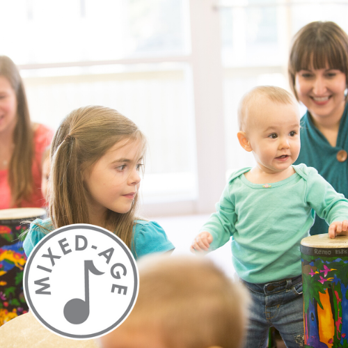 At Kathy’s Music, our mixed-age Kindermusik classes are perfect for busy families like yours!